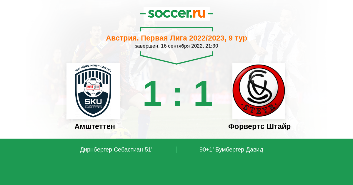 Амштеттен - Форвертс Штайр: обзор матча 16 сентября 2022