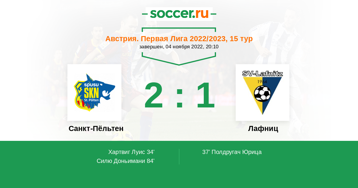 Санкт-Пёльтен - Лафниц: обзор матча 4 ноября 2022