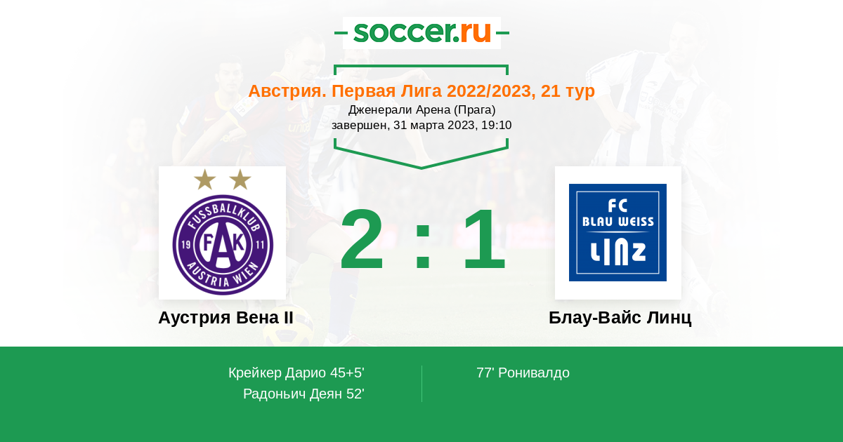 Аустрия Вена II - Блау-Вайс Линц: обзор матча 31 марта 2023