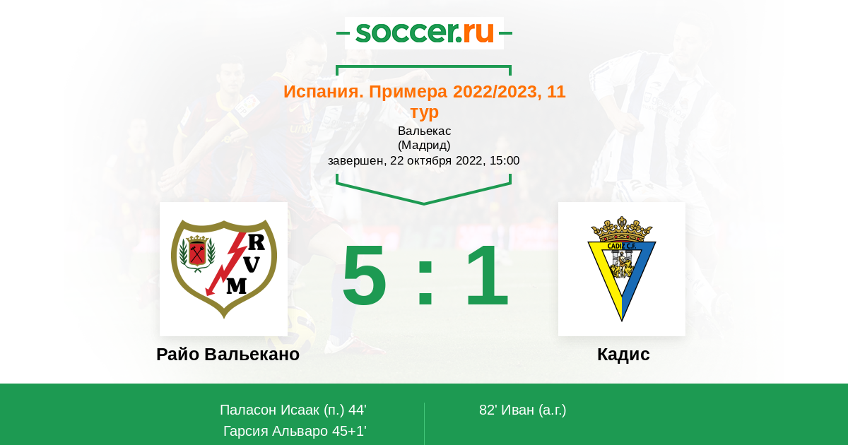 Райо Вальекано - Кадис: обзор матча 22 октября 2022