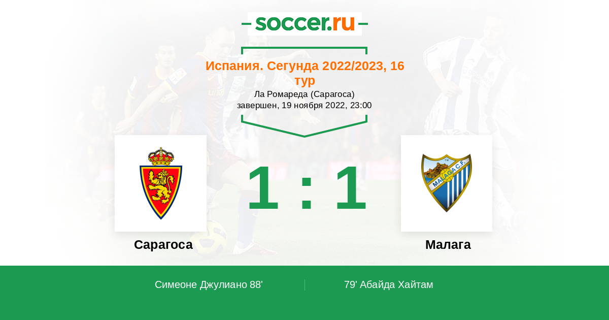 Сарагоса - Малага: обзор матча 19 ноября 2022