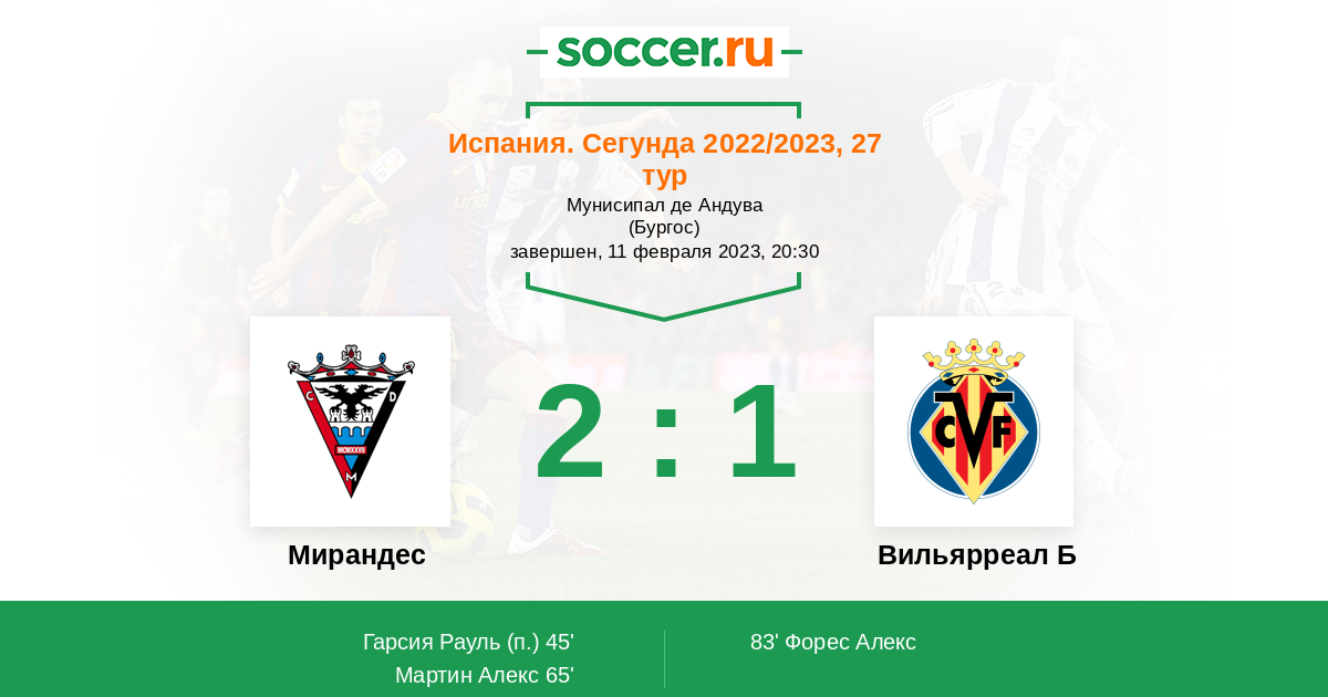 Мирандес - Вильярреал Б: обзор матча 11 февраля 2023