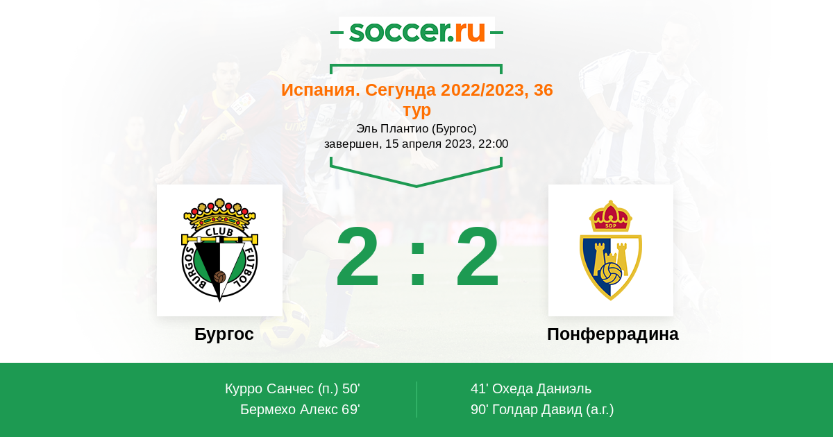 Бургос - Понферрадина: обзор матча 15 апреля 2023