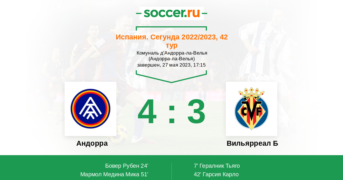 Андорра - Вильярреал Б: обзор матча 27 мая 2023