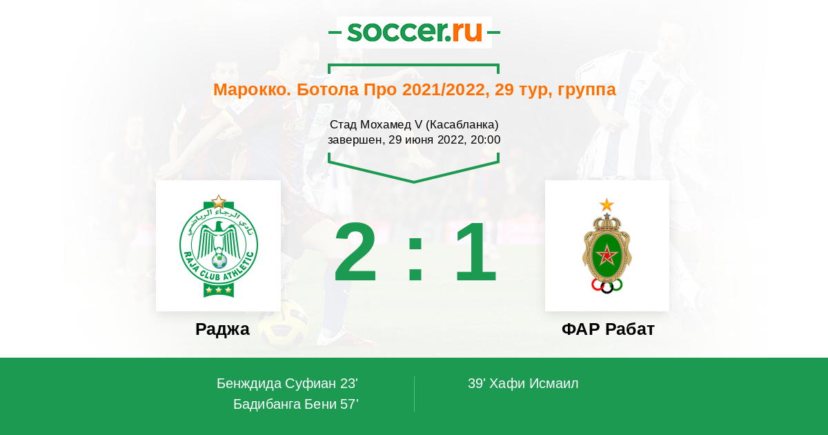 Раджа - ФАР Рабат: обзор матча 29 июня 2022