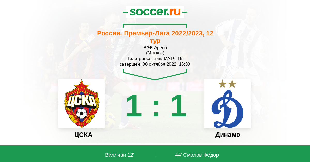 Очень интересная получилась игра на "ВЭБ-Арене", которая по итогу победителя не выявила. ЦСКА имели больше моментов и могли забивать больше, чем один гол, но и "Динамо" активизировались в конце второго тайма и пару раз простили Акинфеева, а где-то спасла и перекладина. Прямую текстовую онлайн трансляцию матча для вас провёл Старчеус Сергей. Ради таких матчей мы и любим футбол, впереди ещё одна увлекательная игра между "Сочи" и "Локомотивом", оставайтесь с https://www.soccer.ru !