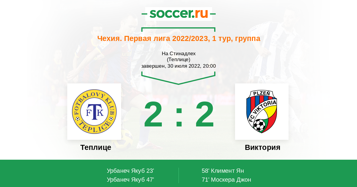 58' ГолЛоготип ВикторияКлимент Ян (9, н) (Логотип ВикторияКалвач Лукаш (23, п)) - 2:1
