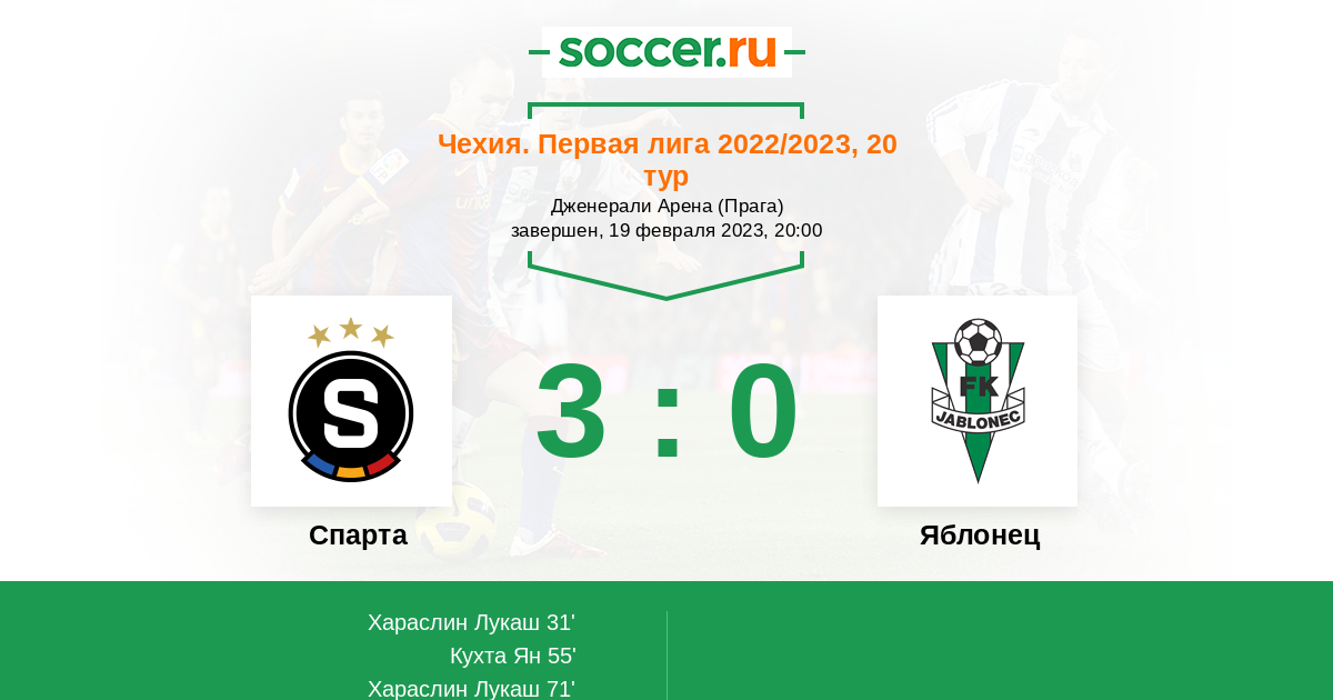 Спарта - Яблонец: обзор матча 19 февраля 2023