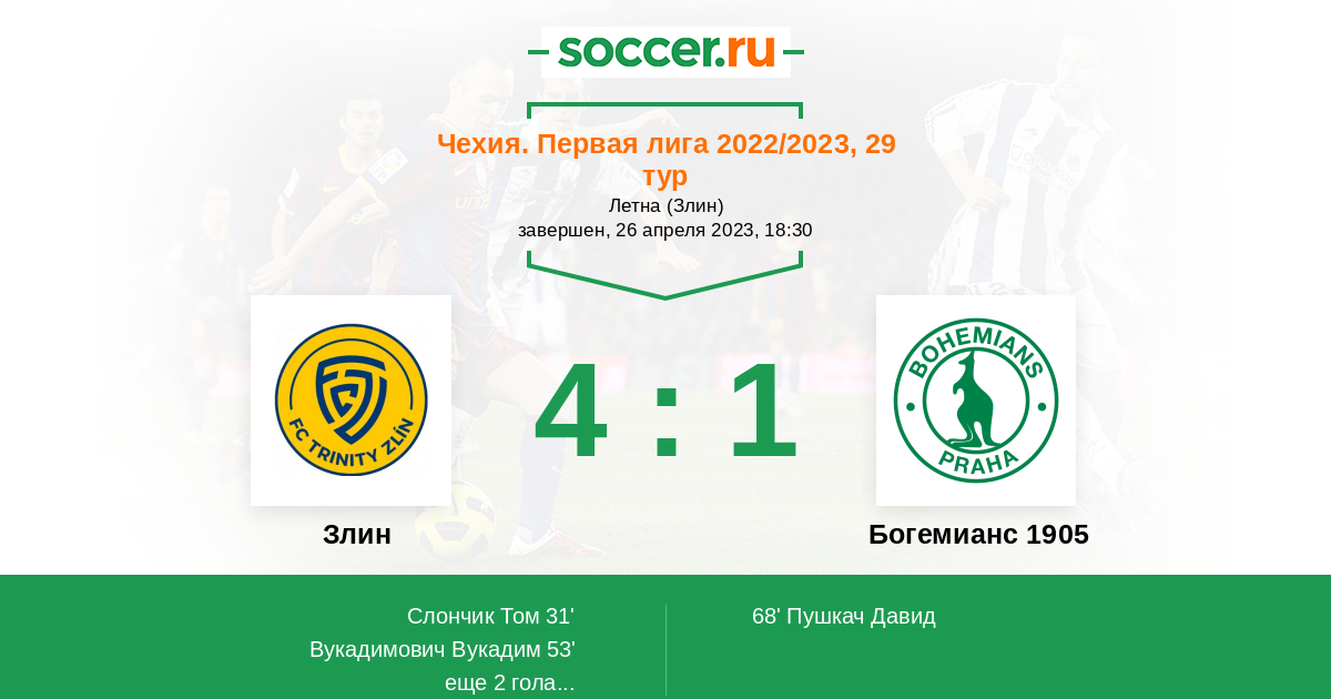 Злин - Богемианс 1905: обзор матча 26 апреля 2023