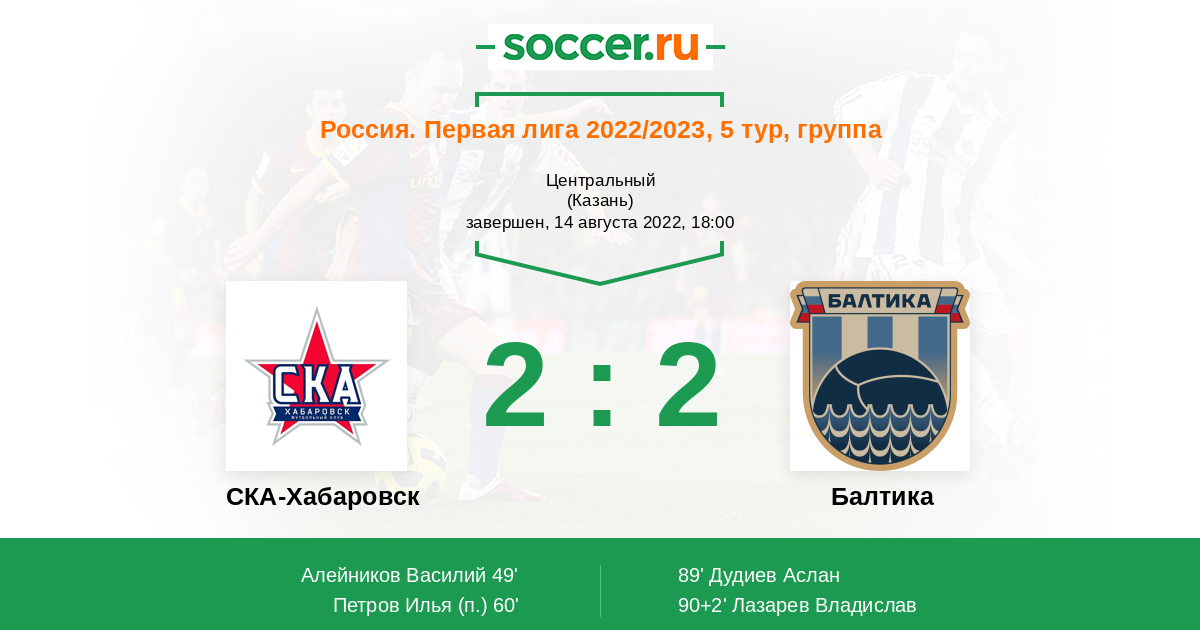 СКА-Хабаровск - Балтика: обзор матча 14 августа 2022