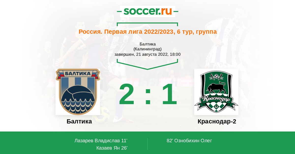 Балтика - Краснодар-2: обзор матча 21 августа 2022