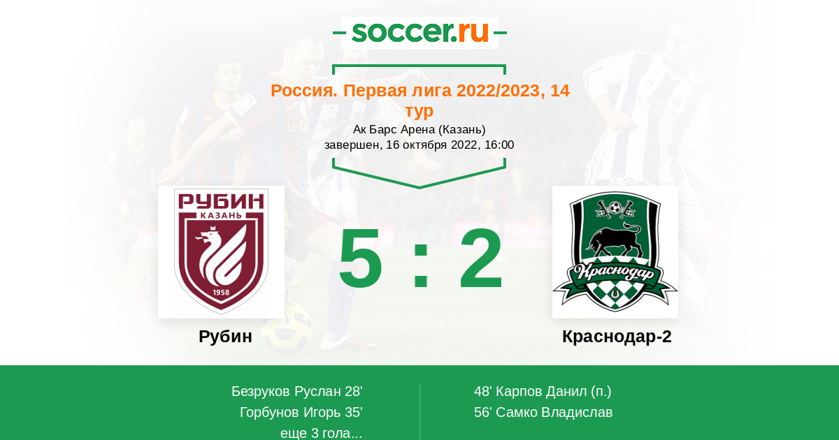 Рубин - Краснодар-2: обзор матча 16 октября 2022