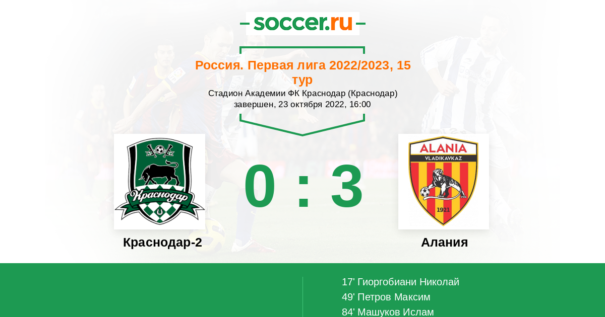 Краснодар-2 - Алания: обзор матча 23 октября 2022