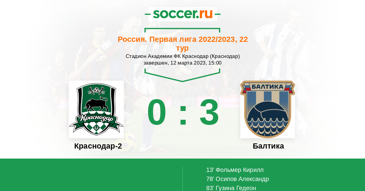 Краснодар-2 - Балтика: обзор матча 12 марта 2023