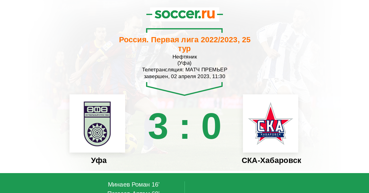 Уфа - СКА-Хабаровск: обзор матча 2 апреля 2023