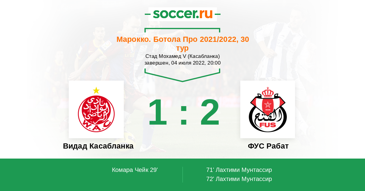 Видад Касабланка - ФУС Рабат: обзор матча 4 июля 2022