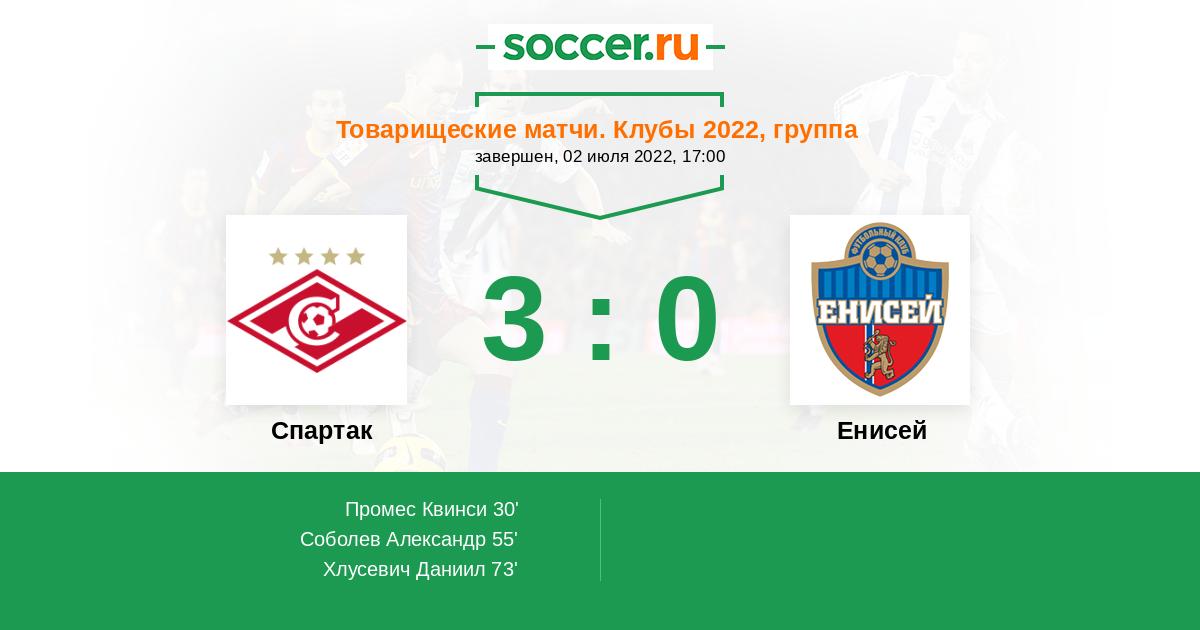Спартак - Енисей: обзор матча 2 июля 2022