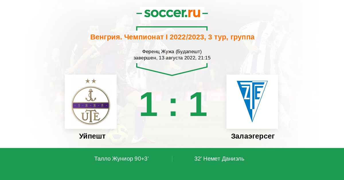 Уйпешт - Залаэгерсег: обзор матча 13 августа 2022
