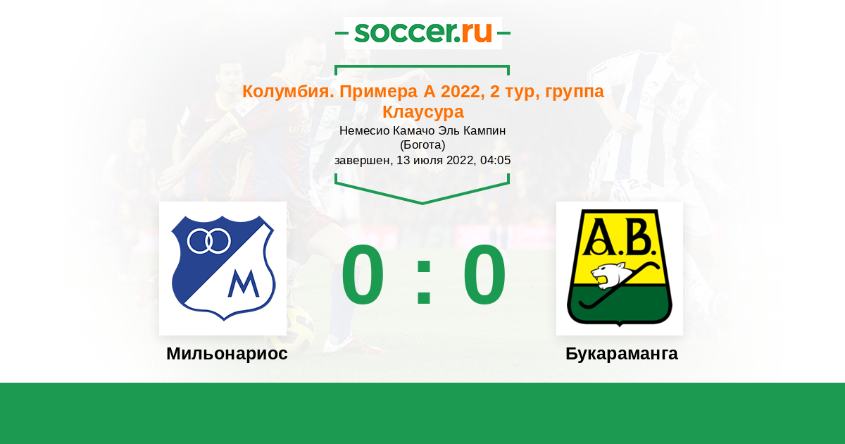 Мильонариос - Букараманга: обзор матча 13 июля 2022