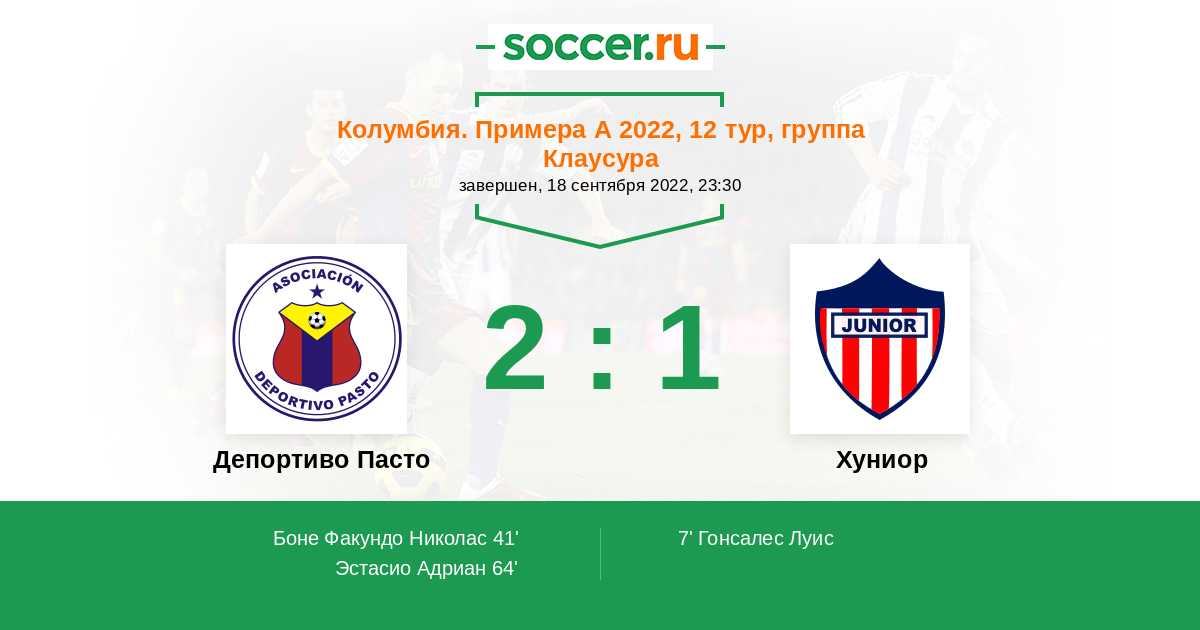 Депортиво Пасто - Хуниор: обзор матча 18 сентября 2022
