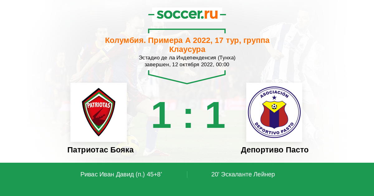 Патриотас Бояка - Депортиво Пасто: обзор матча 12 октября 2022