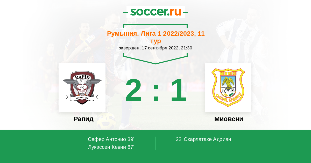 Рапид - Миовени: обзор матча 17 сентября 2022