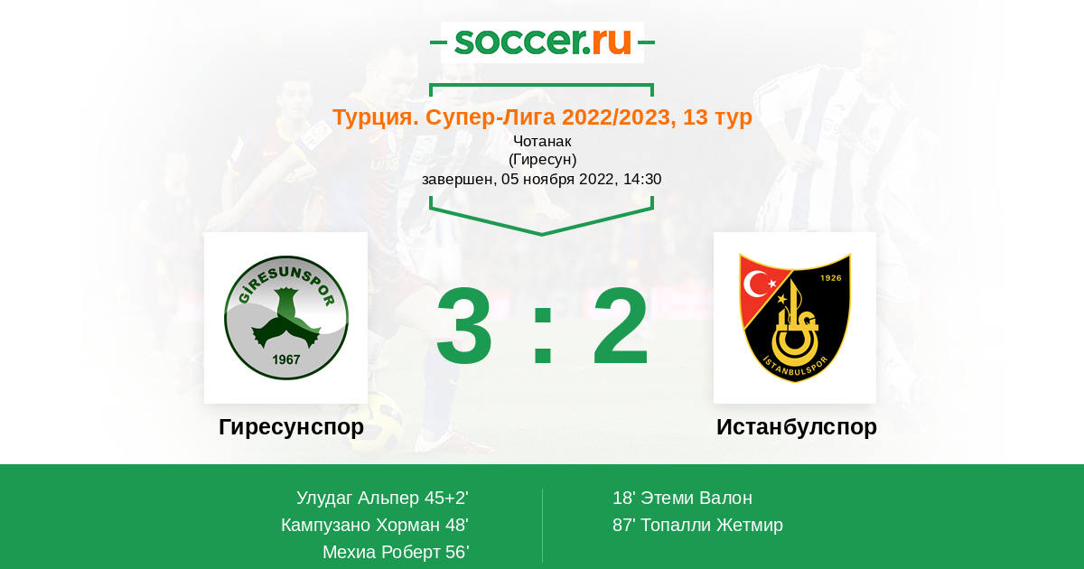 Гиресунспор - Истанбулспор: обзор матча 5 ноября 2022