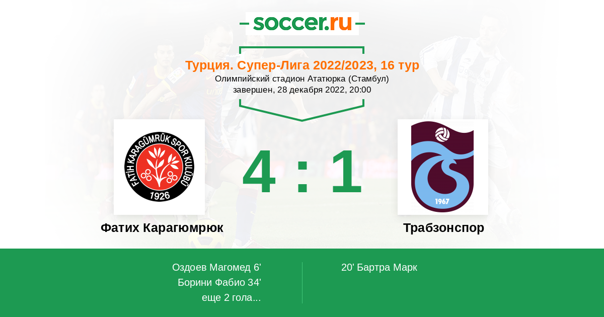 Фатих Карагюмрюк - Трабзонспор: обзор матча 28 декабря 2022