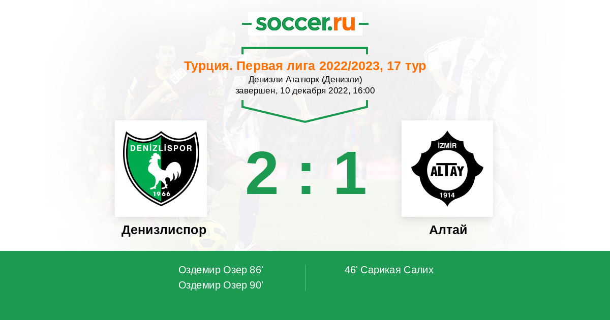 Денизлиспор - Алтай: обзор матча 10 декабря 2022