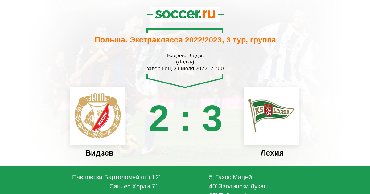 Видзев - Лехия: обзор матча 31 июля 2022