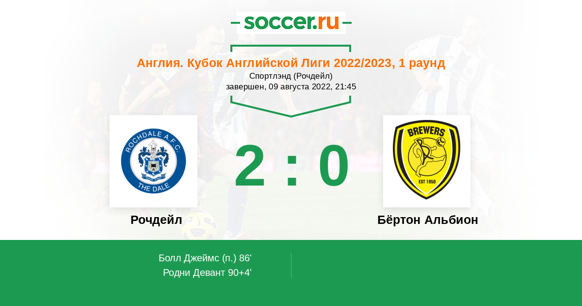 Рочдейл - Бёртон Альбион: обзор матча 9 августа 2022