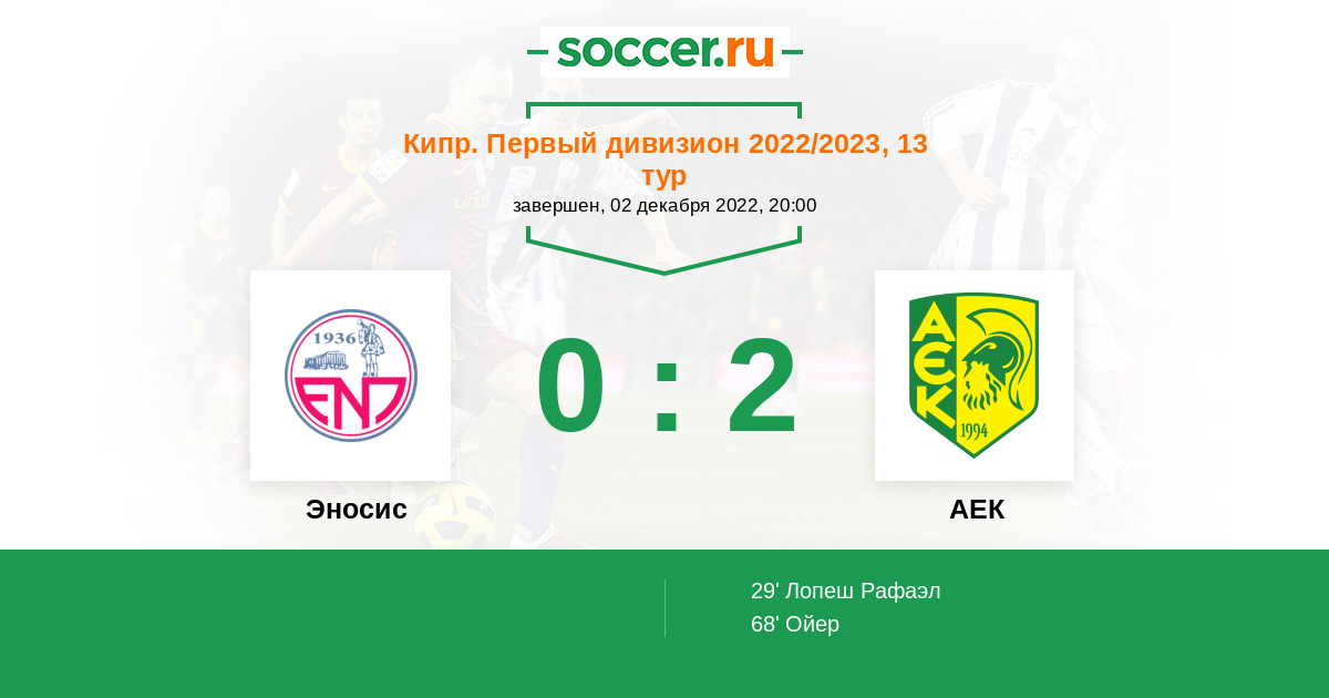 Эносис - АЕК: обзор матча 2 декабря 2022