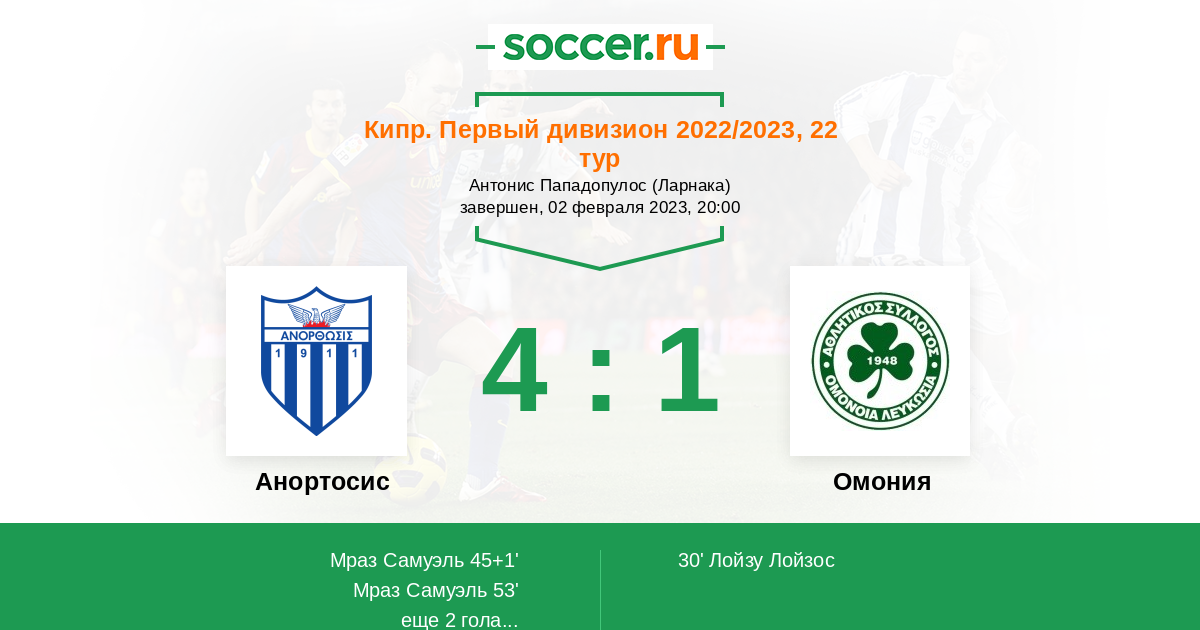 Анортосис - Омония: обзор матча 2 февраля 2023