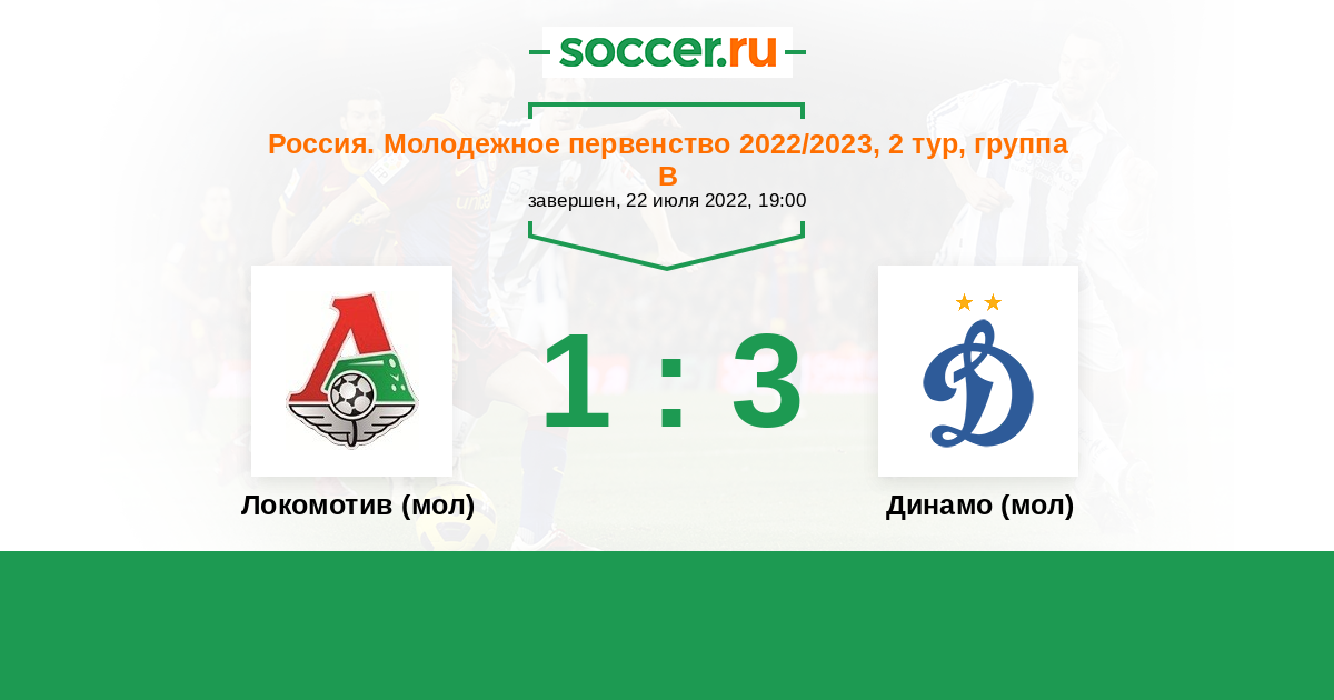 Локомотив (мол) - Динамо (мол): обзор матча 22 июля 2022