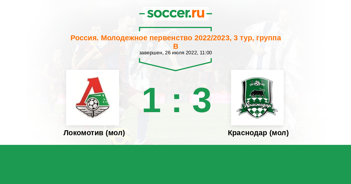 Локомотив (мол) - Краснодар (мол): обзор матча 26 июля 2022