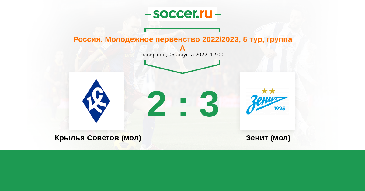 Крылья Советов (мол) - Зенит (мол): обзор матча 5 августа 2022