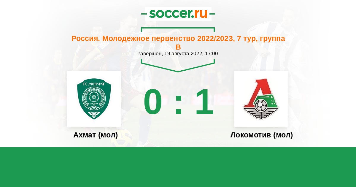 Ахмат (мол) - Локомотив (мол): обзор матча 19 августа 2022