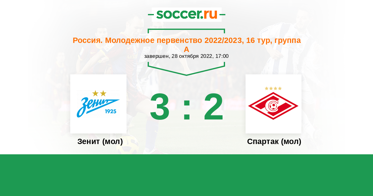 Зенит (мол) - Спартак (мол): обзор матча 28 октября 2022