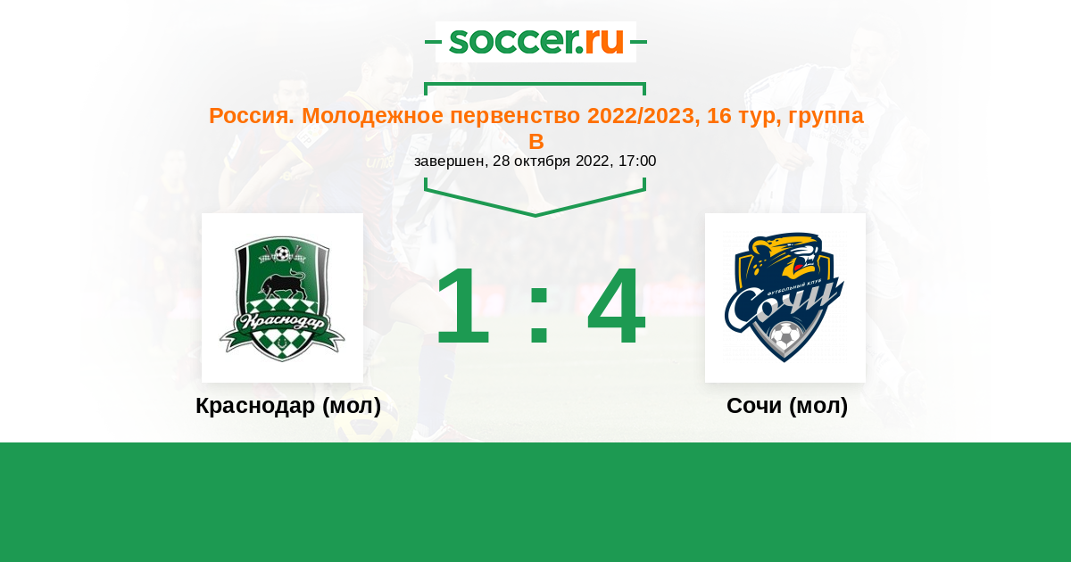 Краснодар (мол) - Сочи (мол): обзор матча 28 октября 2022