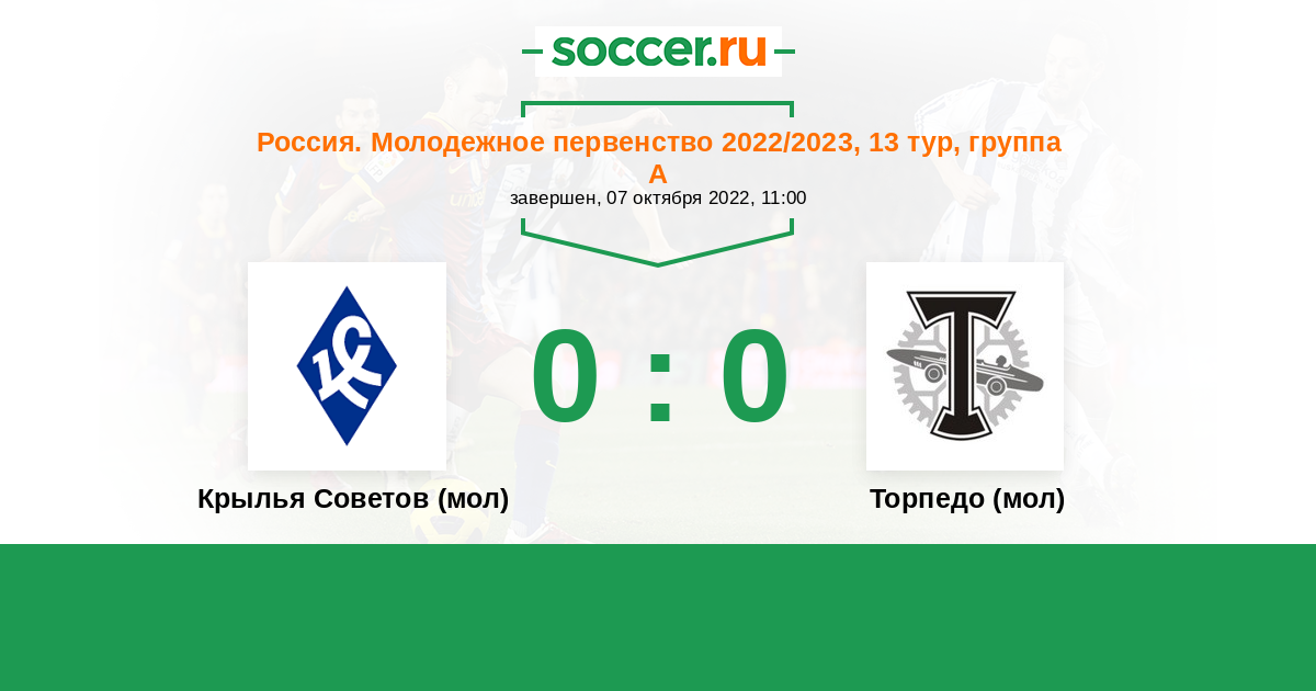 Крылья Советов (мол) - Торпедо (мол): обзор матча 7 октября 2022