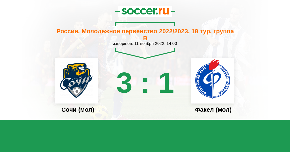 Сочи (мол) - Факел (мол): обзор матча 11 ноября 2022