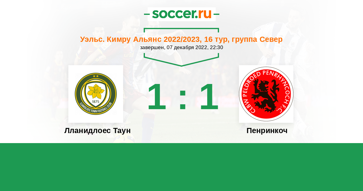 Лланидлоес Таун - Пенринкоч: обзор матча 7 декабря 2022