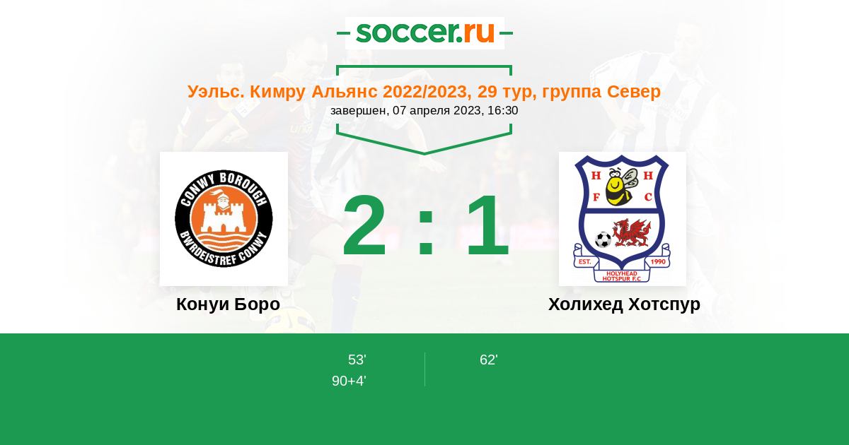 Конуи Боро - Холихед Хотспур: обзор матча 7 апреля 2023