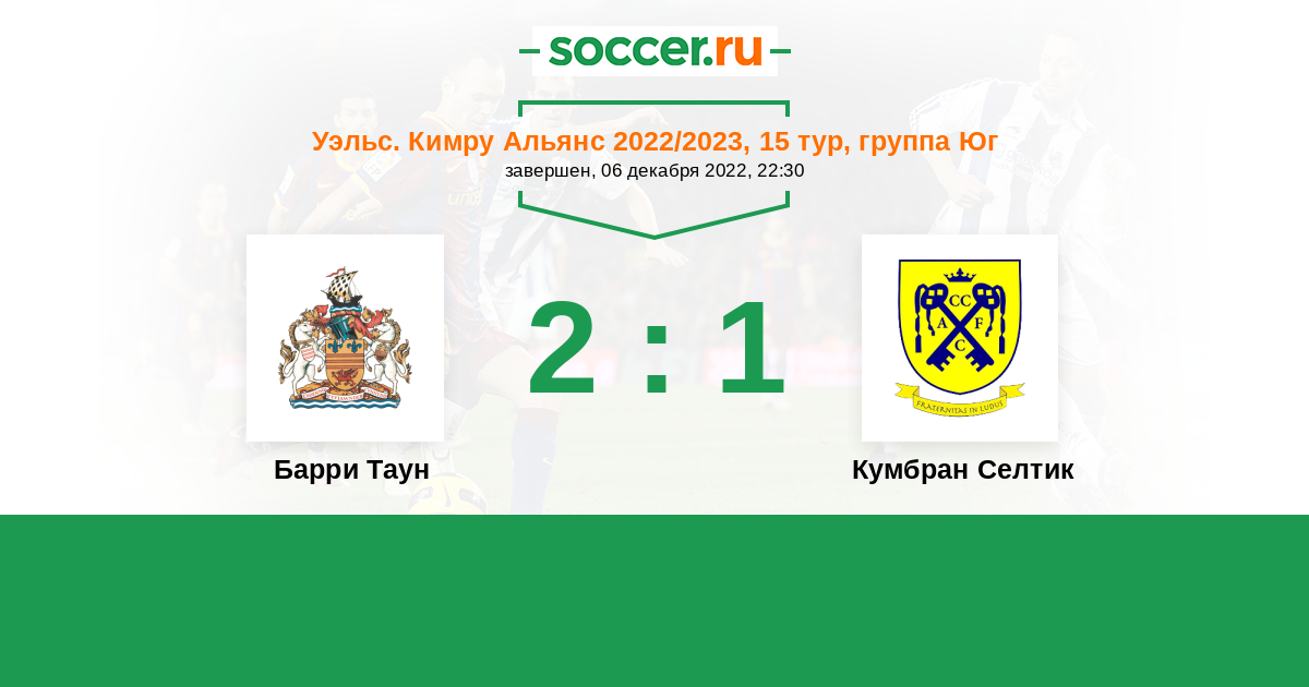 Барри Таун - Кумбран Селтик: обзор матча 6 декабря 2022