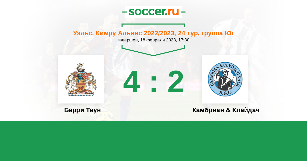 Барри Таун - Камбриан & Клайдач: обзор матча 18 февраля 2023