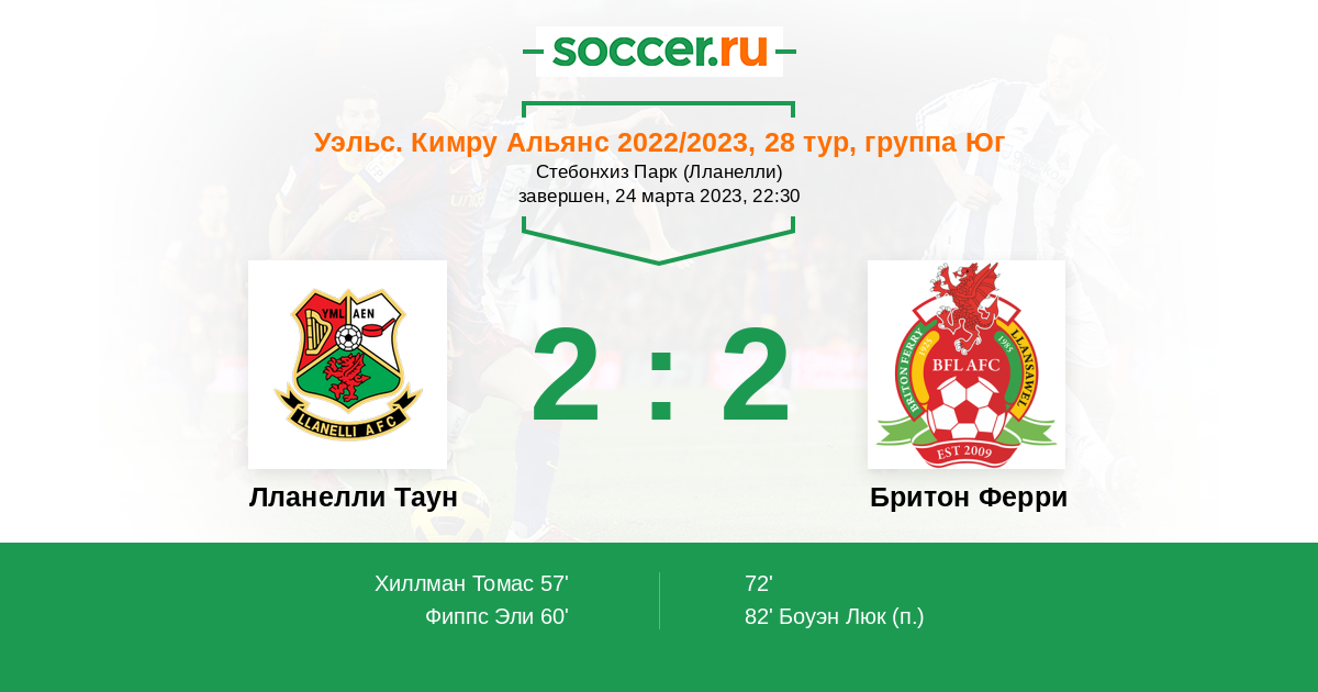 Лланелли Таун - Бритон Ферри: обзор матча 24 марта 2023