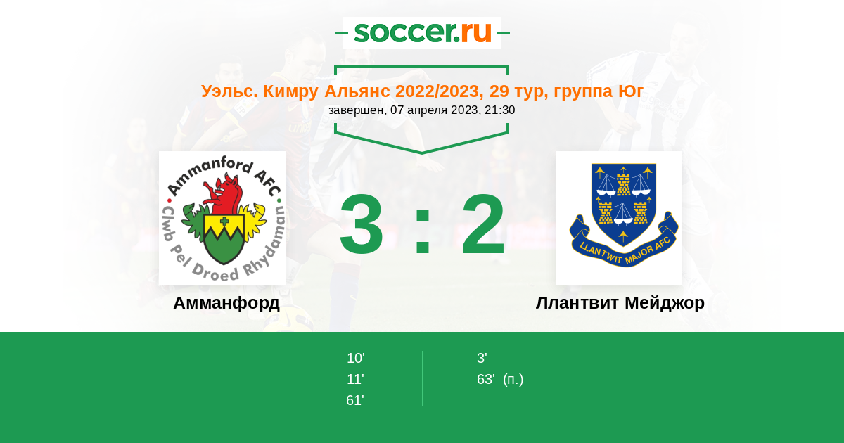 Амманфорд - Ллантвит Мейджор: обзор матча 7 апреля 2023