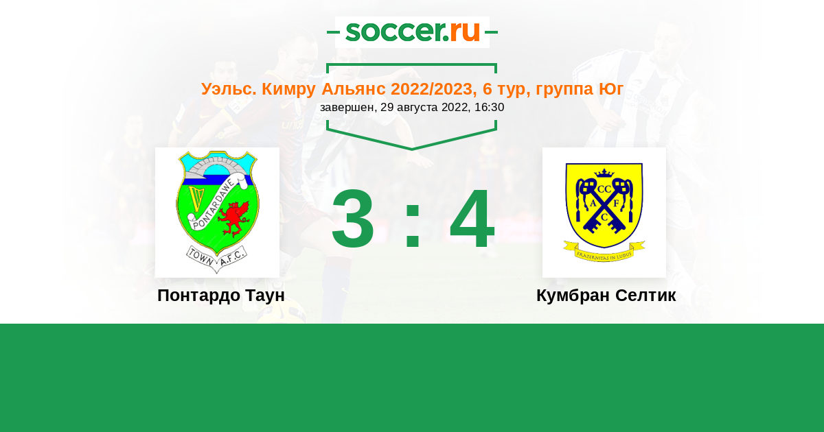 Понтардо Таун - Кумбран Селтик: обзор матча 29 августа 2022