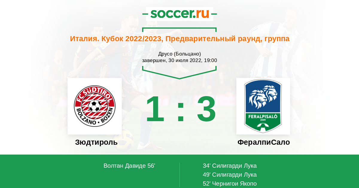 Зюдтироль - ФералпиСало: обзор матча 30 июля 2022