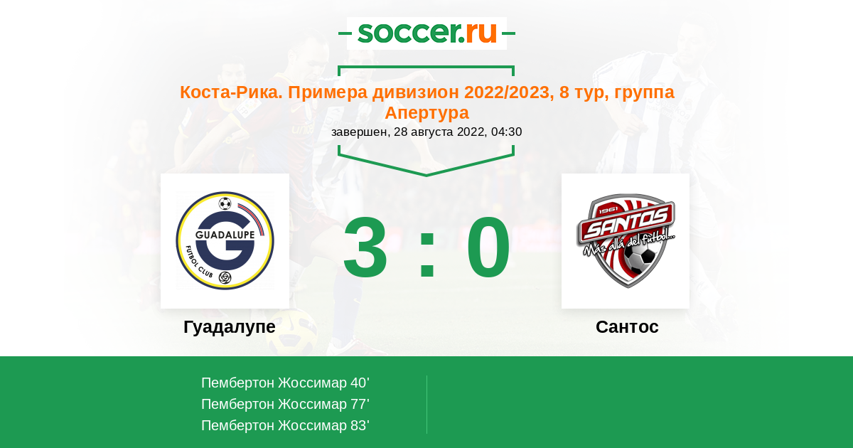 Гуадалупе - Сантос: обзор матча 28 августа 2022